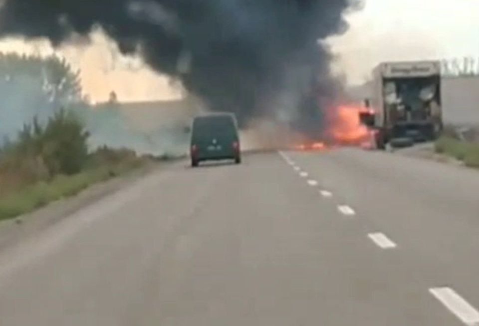 Это кадры, как утверждается, с трассы Изюм-Славянск, до которой теперь успешно долетают наших дроны. До недавнего времени трасса считалась тыловой дорогой снабжения ВСУ. Теперь же логистика противника нарушена и здесь.