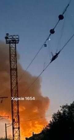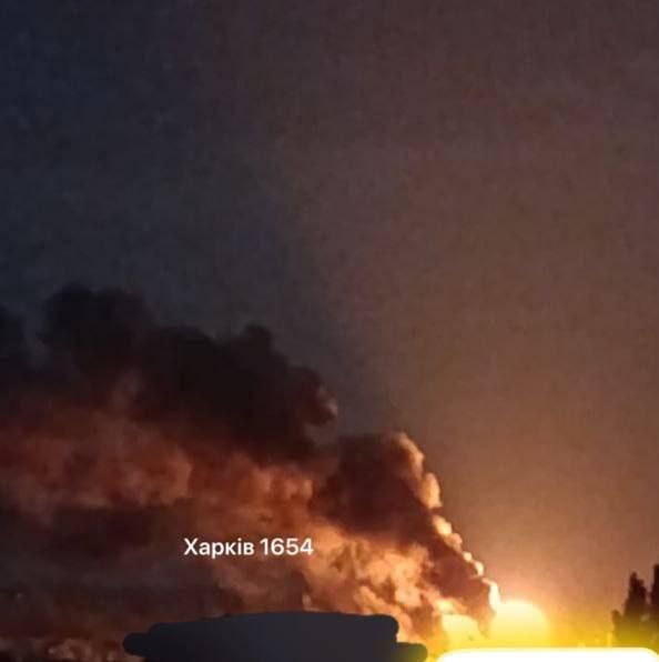 Кадры ночного пожара после ударов "Гераней" по объектам врага в Харькове