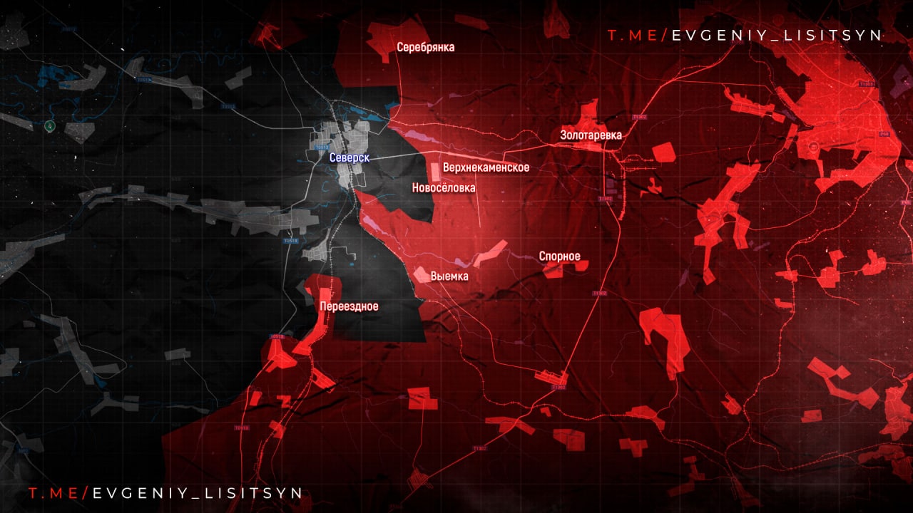 ВС РФ продвигаются в Васюковке и Звановке, закрепились на южной окраине Северска. Перерезана дорога из Лимана к Закотному.
