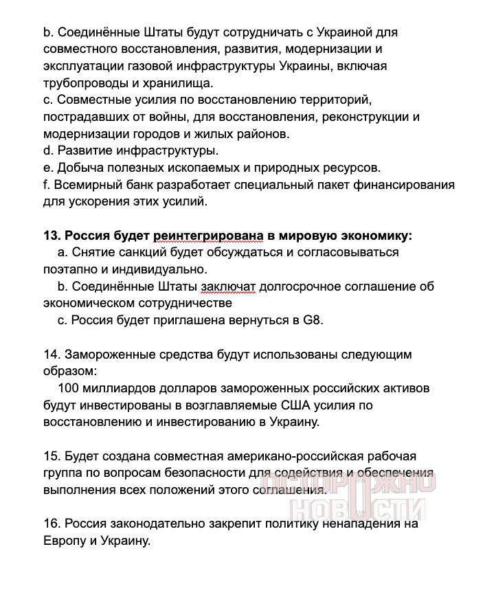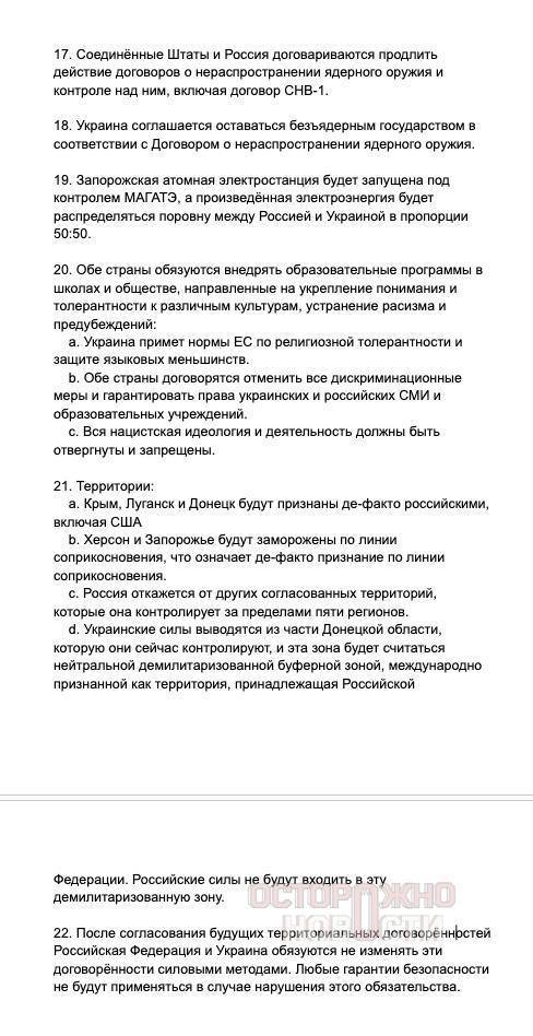 Ну вот, собственно, утечка пиз дила мирного соглашения по Украине.