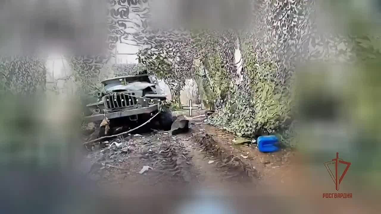 Операторы беспилотников спецназа Росгвардии выявили реактивную систему залпового огня БМ-21 «Град» ВСУ и поразили её дронами-камикадзе с оптоволоконным управлением.