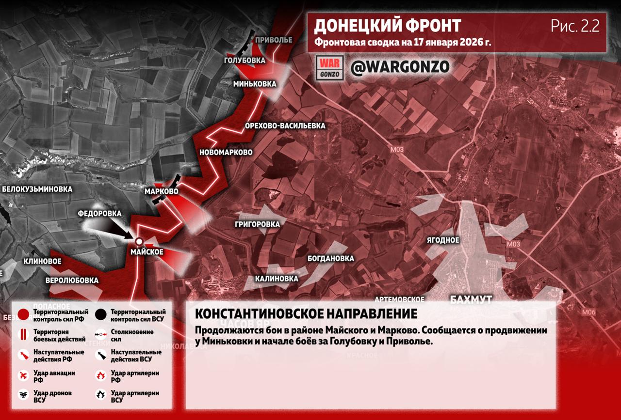 На Константиновском направлении продолжаются бои в районе Майского и Марково. Сообщается о продвижении у Миньковки и начале боёв за Голубовку и Приволье. (Рис. 2.2)