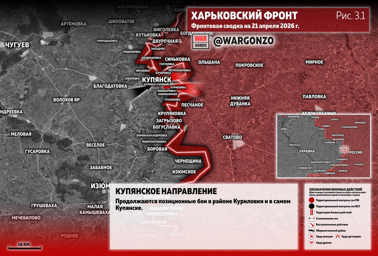 На Купянском направлении продолжаются позиционные бои в районе Куриловки и в самом Купянске. (Рис. 3.1)