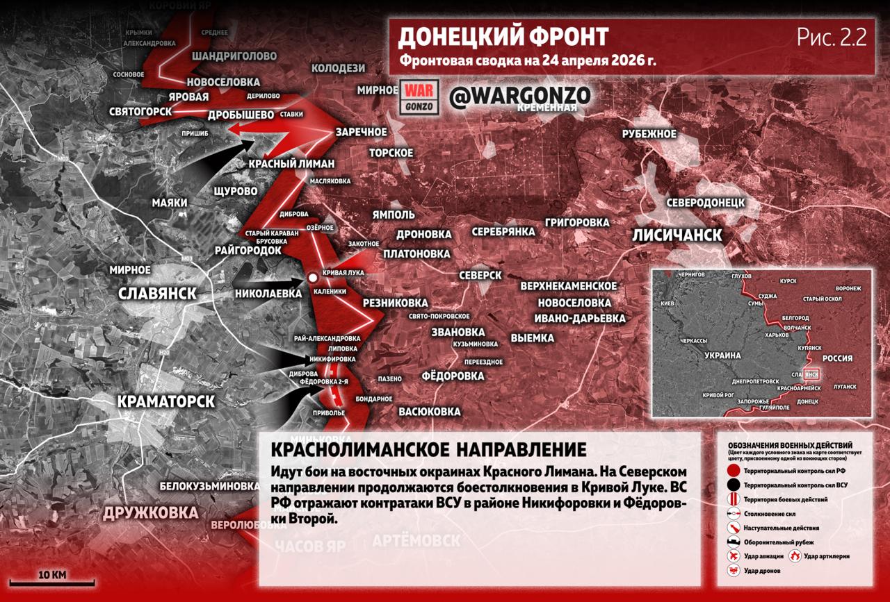 На Константиновском направлении сохраняется напряжённая ситуация в районе Долгой Балки и Ильиновки. Продолжаются бои в самой Константиновке, в районе Новодмитровки и в южной части Часова Яра.