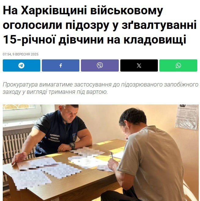 Продолжаем новости из краины победившей гиднючести. В Харькове боевик 92-й ошбр ЗСУ изнасиловал 15-летнюю девочку на кладбище