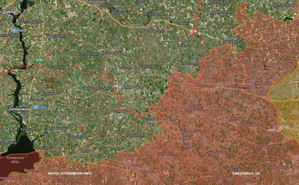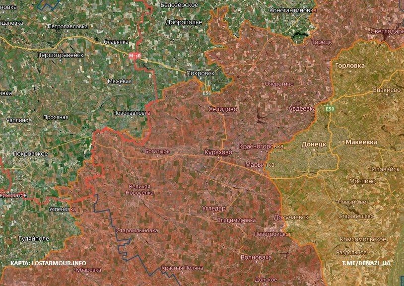 На Красноармейском направлении фиксируются успехи ВС РФ в микрорайоне Лазурный и зачищается мкрн Солнечный; идут бои за Южный и Шахтёрский. Есть продвижение к Новопавловке. На севере отмечаются успехи в Родинском, Никаноровке и Вольном, Золотом Колодезе. ВС РФ двигаются к Петровке и закрепляются во Владимировке.