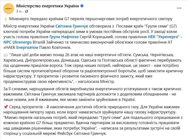 Чуть ранее украинское Минэнерго сообщило, что за последние сутки ВС России нанесли более 26 ударов по объектам украинской энергоинфраструктуры.