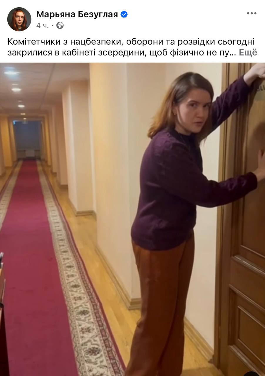Сегодня оборонный комитет закрыл дверь перед Безуглой и не пустил её на заседание.