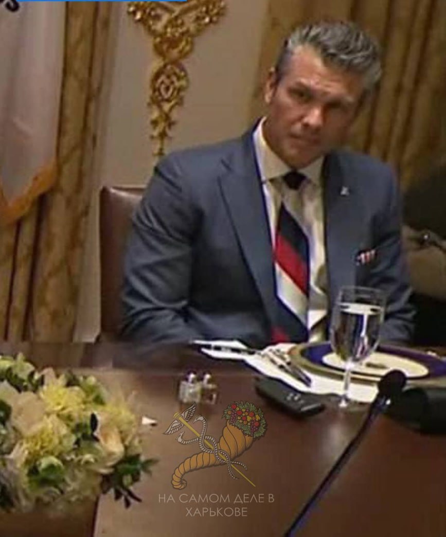 Военный министр США Хегсет на встречу с Зеленским надел галстук в цветах российского флага.