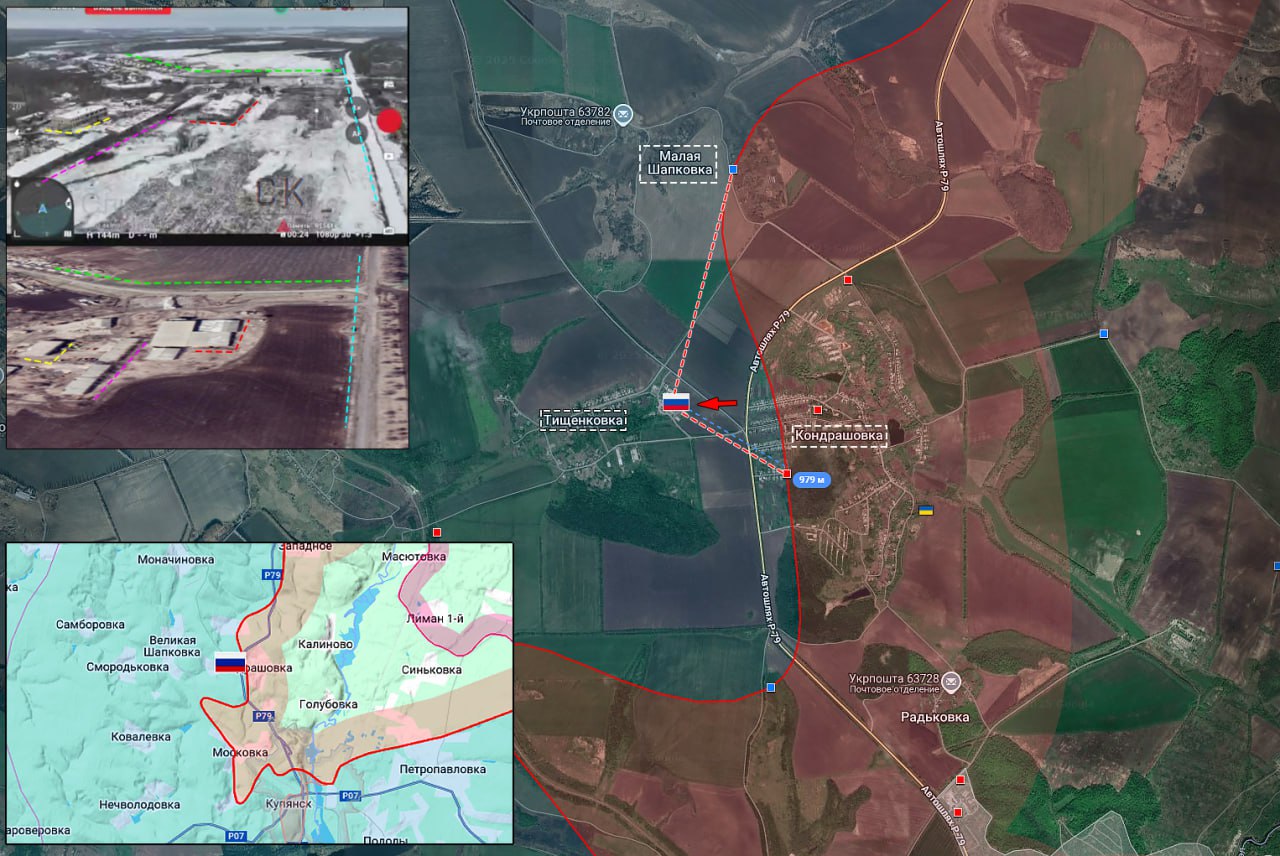 Севернее Купянска российские войска со стороны Кондрашовки ворвались в восточную часть Тищенковки и закрепились там.Зафиксировано расширение зоны контроля армии России - более 1 км. "На Купянском направлении продолжаются тяжёлые бои на...