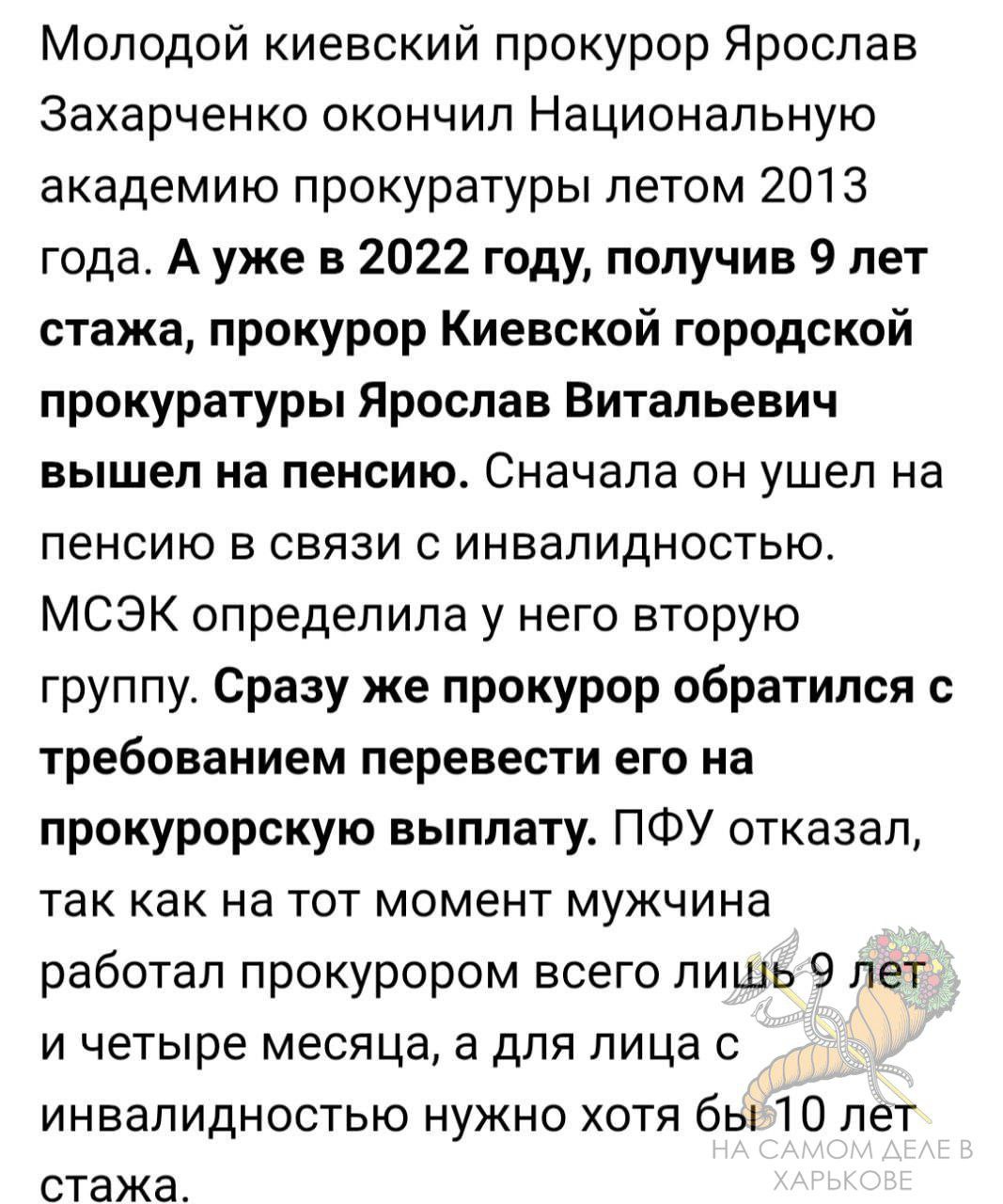 При этом сам ПРОКУРОР, 1988 года рождения, является ПЕНСИОНЕРОМ и ИНВАЛИДОМ, получает ДВЕ пенсии в размере более 100 тыс.грн. и на фронт не попадет никогда. Так что может безопасно требовать ужесточения правил по отношению к "ухылянтов".