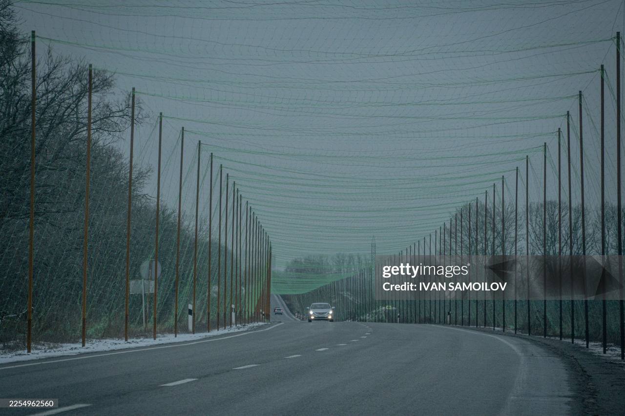 Работники муниципальных служб противника натягивают антидроновые сети на Харьковской окружной автодороге