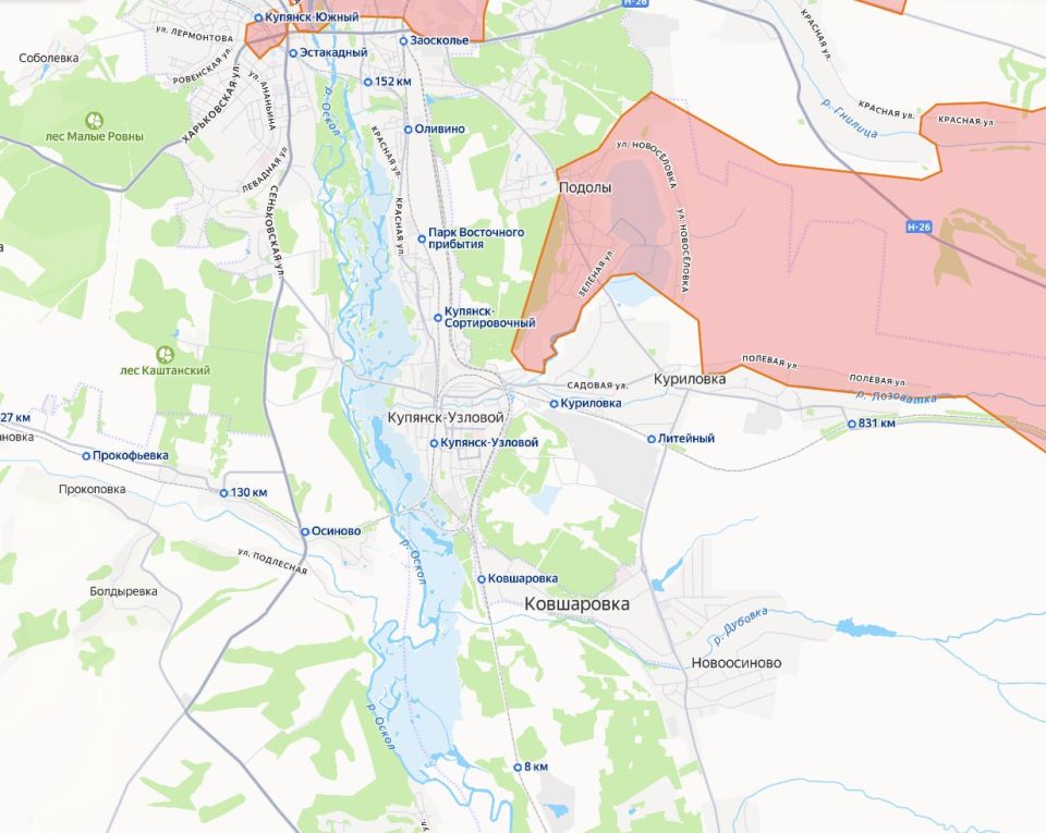 Как всегда, для сравнения карты отечественных картографических проектов с актуальной обстановкой на Купянском направлении. По самым оптимистичным данным, ВС РФ только-только вышли на окраины Купянска-Узлового. По другим - даже до этого еще далеко.