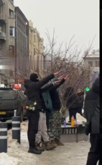 В соцсетях распространяется видео, на котором молодые харьковчане с балаклавами на голове возвращают нас во времена расцвета фашистской идеологии.Недобитки с промытыми мозгами делают это под немецкую музыку середины XX века напротив ТЦ...