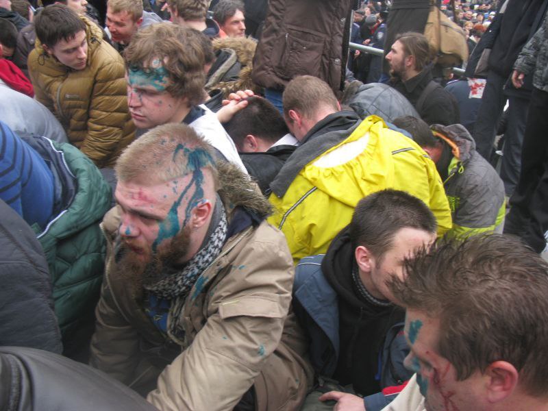 Бандеровцев выбили и вывели через корридор позора, облив зеленкой и заставив просить на коленях прощения.