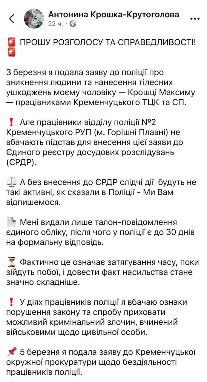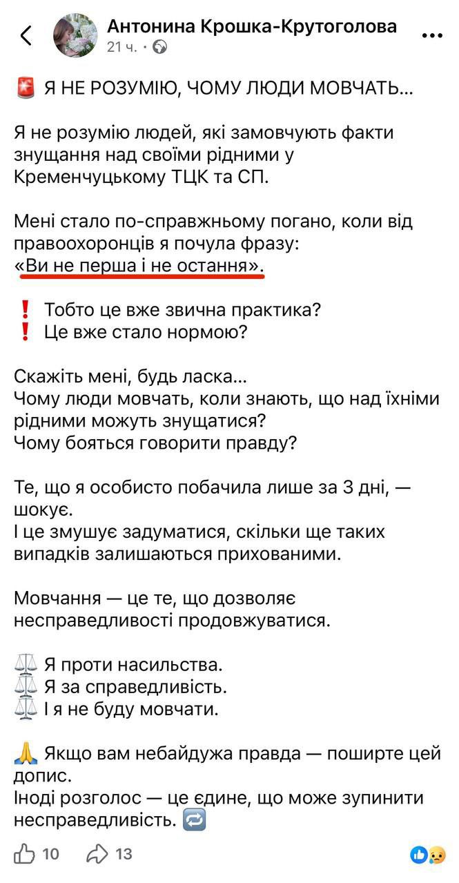 А теперь представьте, что это ваш близкий. Вы идете в полицию, чтобы написать заявление об исчезновении человека, а вам в лицо смеются: "Вы не первая и не последняя" у кого "пропал" человек и заявление не примут!