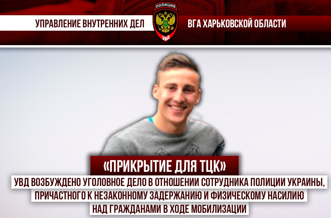УВД возбуждено уголовное дело в отношении сотрудника полиции Украины, причастного к незаконному задержанию и физическому насилию над гражданами в ходе мобилизации