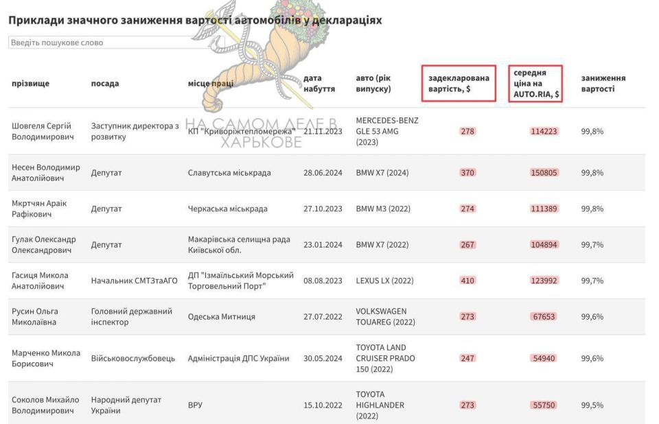405 чиновников, задекларировали элитные авто за копейки. Например: