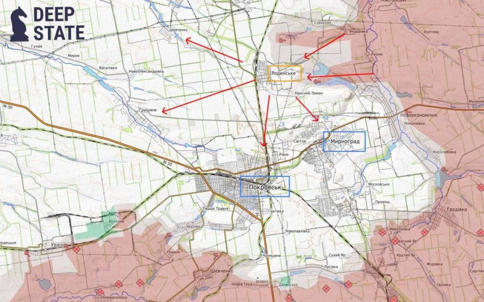 Украинский сегмент телеграма сегодня снова обсуждает потерю Покровска (укр) и Мирнограда. Deepstate выложили карту с потерей города Роднинское.