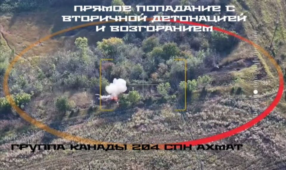 Незамедлительно, сюда начали прилетать FPV дроны, которые в конечном счете вызвали детонацию боекомплекта.