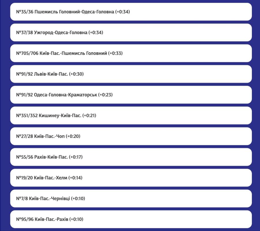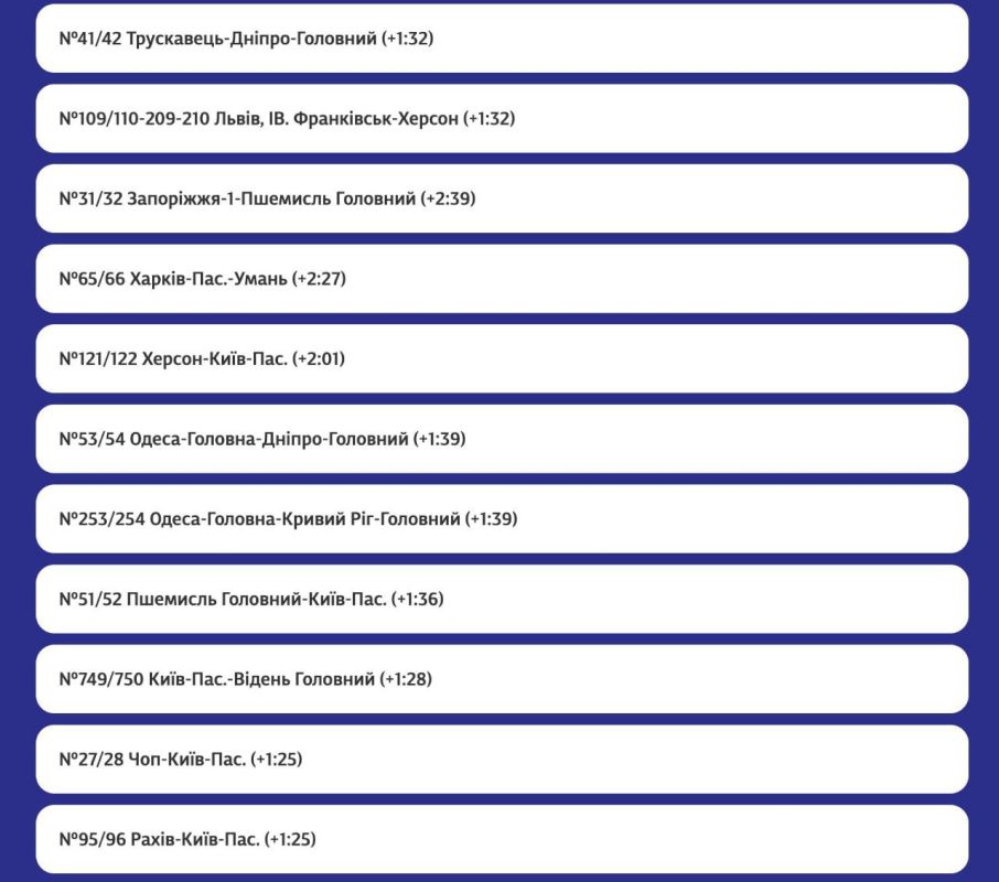 Укрзализниця сообщает о массовых задержках поездов из-за атак ВС РФ по подстанциям. Часть рейсов следуют по измененным маршрутам, уже задействовано 20 резервных тепловозов.