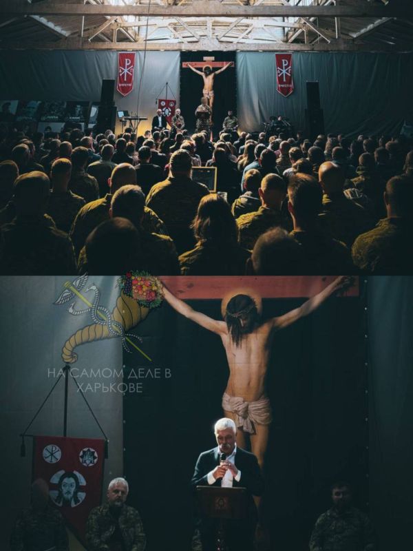 «Орбан - идиот! Он не понимает, что если ВСУ потерпят поражение, они будут вынуждены отступать в Закарпатье, а дальше и в Венгрию. Само-собой разумеется, ВСУ будут вынуждены уничтожать всех, кто будет им мешать и в первую очередь - это будет Орбан», - КорчинскийВдобавок усатый недоумок устраивает сходки своего братства на пару с раскольнической ПЦУ. Участие во всей этой бесовщине принимает и главный капеллан ГУР МО Константин Холодов. Выступают с кощунственными речами на фоне огромного распятия.