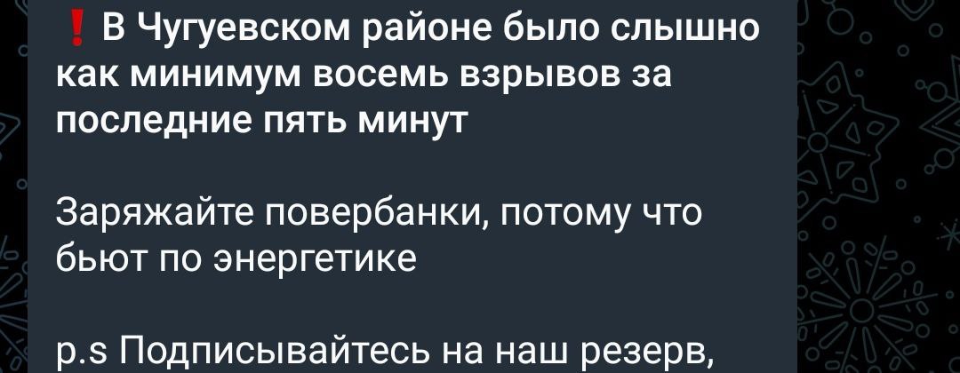 В Харьковской области множественные прилеты по энергетической инфраструктуре. До пяти взрывов в Чугуевской районе и 10 в Первомайском. Во многих районах области пропал свет. В Харькове перебои от 300 до 120 Вольт// Первый Харьковский