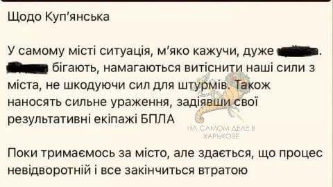 ВСУ не в восторге от происходящего в Купянске. Процесс принял необратимый характер и все закончится потерей города, констатируют они
