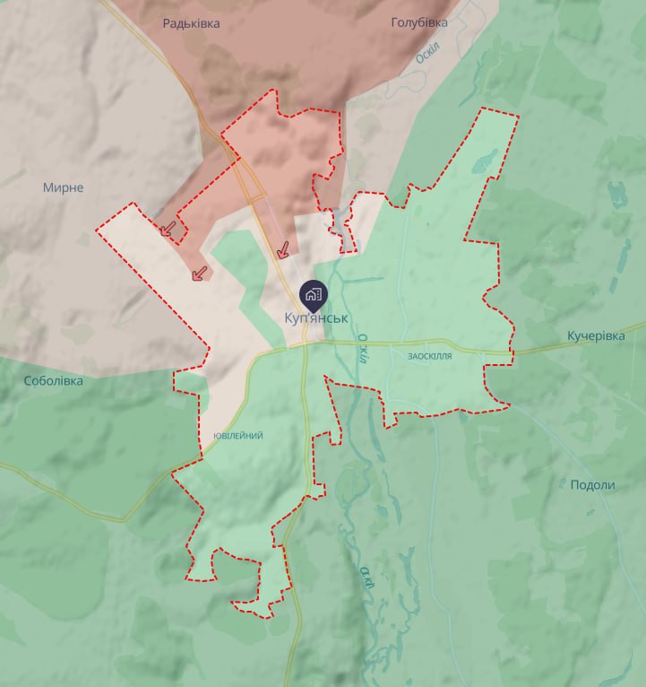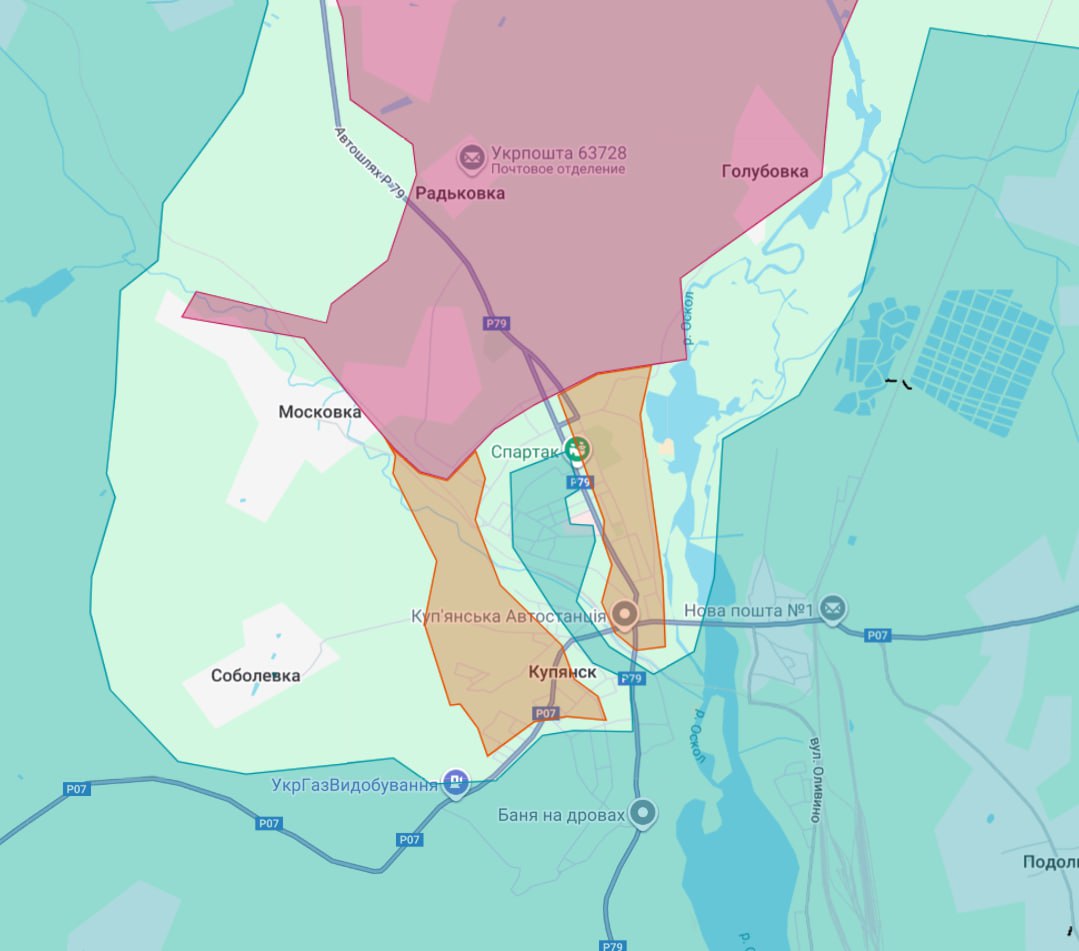 Примерная ситуация по контрою территории в Купянске на текущий момент.