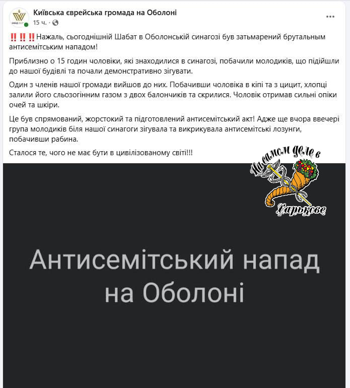 Киевская еврейская община заявила, что синагога на Оболони стала жертвой «брутального антисемитского нападения». Оказывается, перед этим зданием радикалы периодически приходят зигануть и покричать нацистские лозунги.