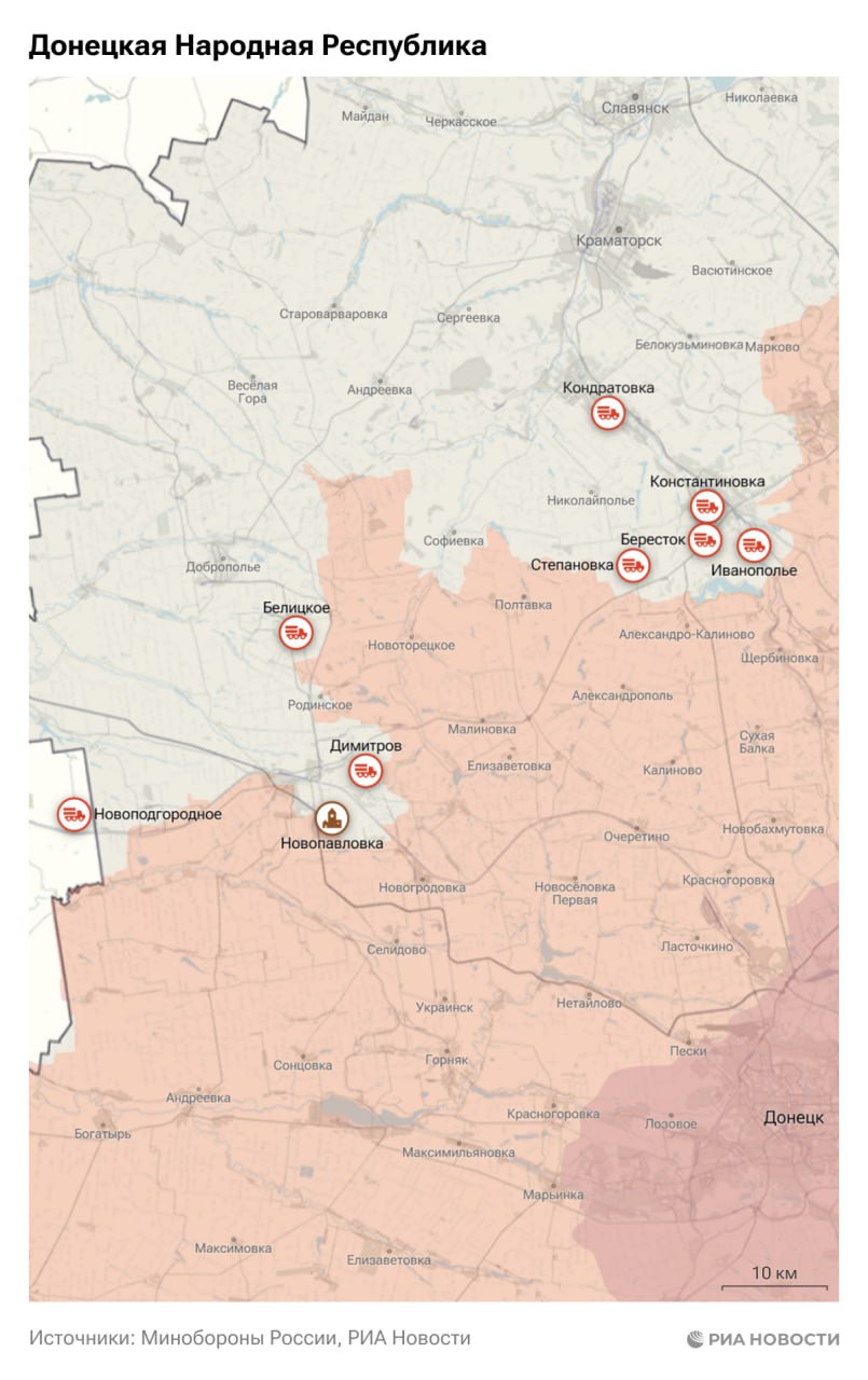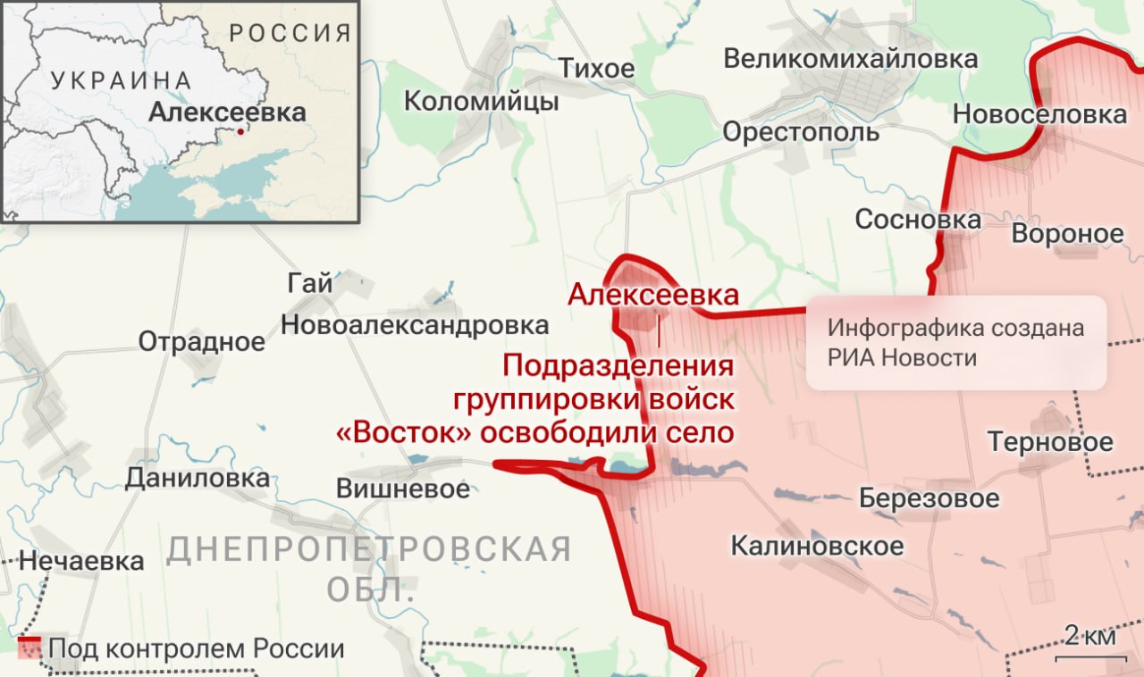 Российские войска взяли под контроль Новопавловку в ДНР и Алексеевку в Днепропетровской области, сообщили в Минобороны.