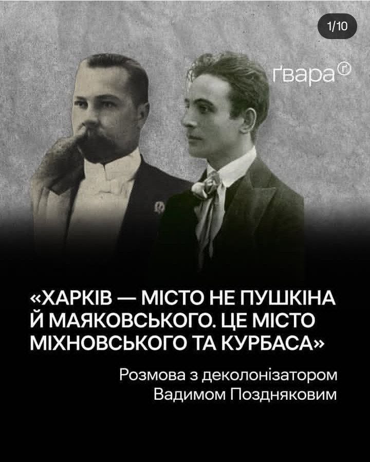 Харьковский рогуль-деколонизатор Вадим Поздняков заявил, что Харьков - это не город Пушкина и Маяковского, а город Михновского и Курбаса.