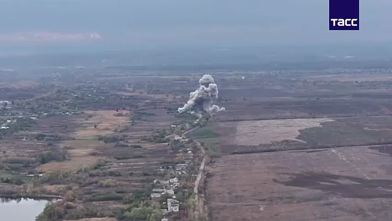 На кадрах с БПЛА видео, как ВКС РФ ударили по пункту временной дислокации и пункту управления беспилотниками ВСУ под Куриловкой.