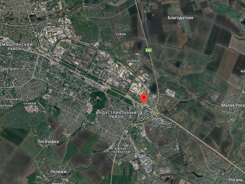 "Хроники Гераней" опубликовали координаты места удара — это окраины промзоны на выезде из Харькова в направлении Чугуева.