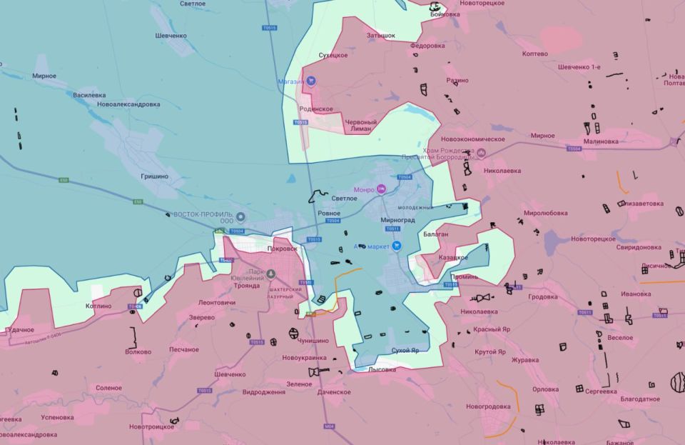 Конечно же, на текущий момент никаких окружений 6-7 бригад (если учесть только боевые батальоны)просто нет. Имеющийся коридор между группировками ВС РФ на западе и севере Покровска составляет несколько километров. Кроме того, крайне маловероятно, что внутри агломерации Покровск-Мирноград все еще сидит многотысячная группировка ВСУ - современные реалии таковы, что бои ведутся малыми группами пехоты как в обороне, так и в наступлении. Из этого проистекает тот факт, что относительно небольшую группировку свободно обеспечивают через текущий коридор по земле и по воздуху дронами, так как она не требует большого количества снабжения. А даже если локальное окружение где-то и произойдет, то, как показывает практика, противник сможет длительное время вести бои в отрезанном состоянии, снабжаясь полностью дронами.