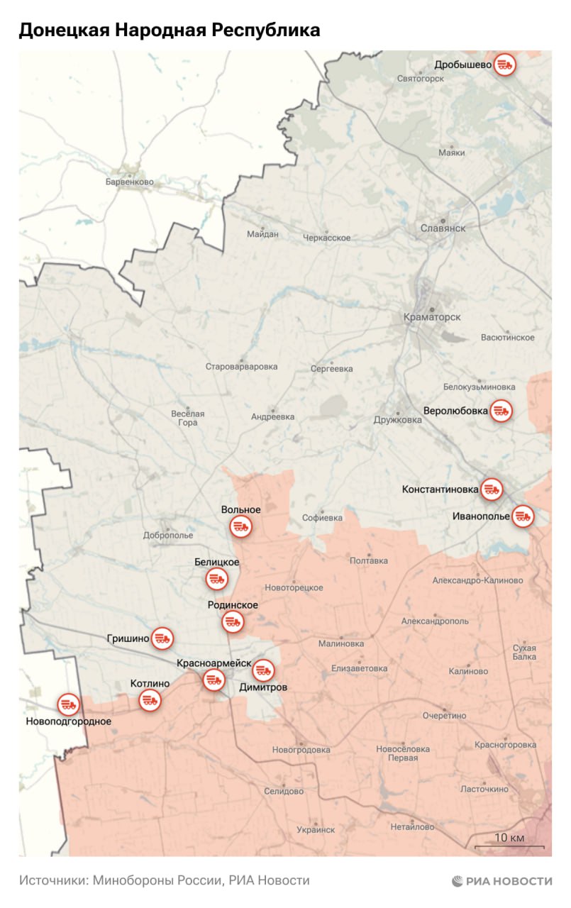 В населенном пункте Красноармейск в ДНР подразделения 2-й армии продолжают уничтожение окруженных формирований ВСУ в городской застройке.