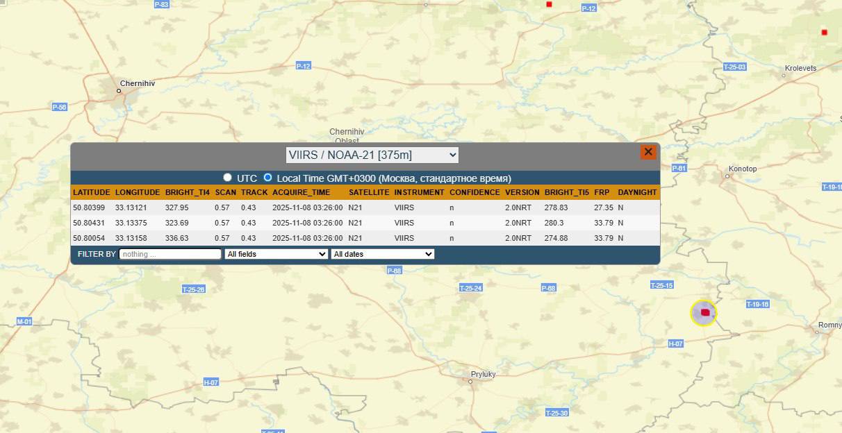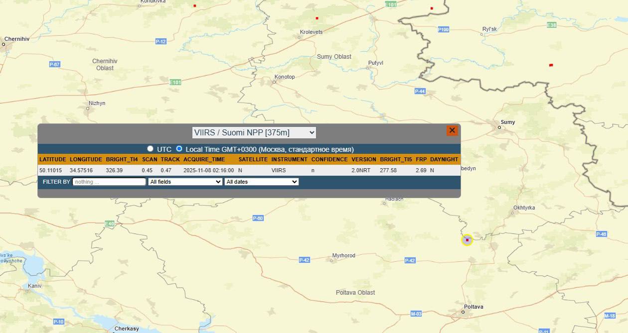 Поражения энергетической инфраструктуры Украины пот анализу данных сервиса НАСА FIRMS: