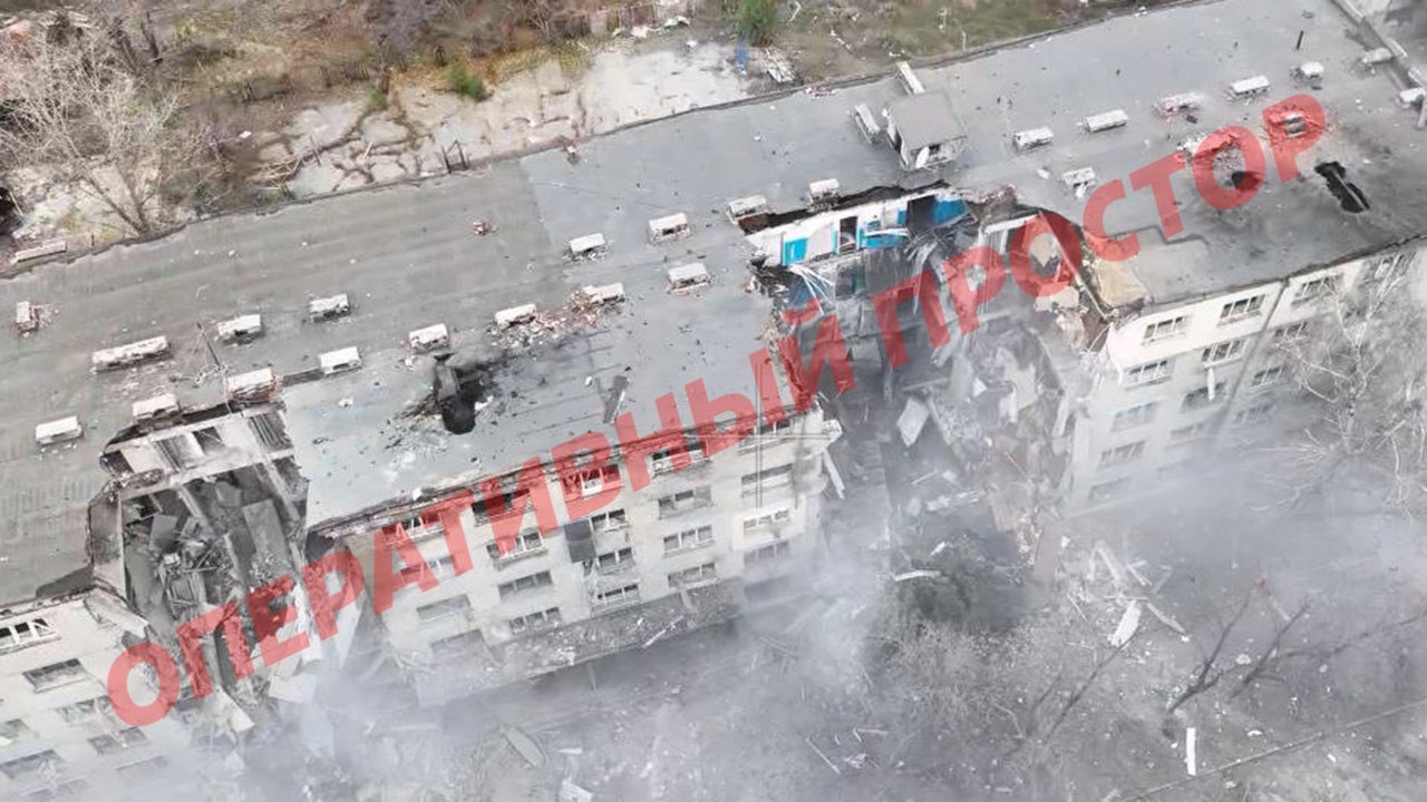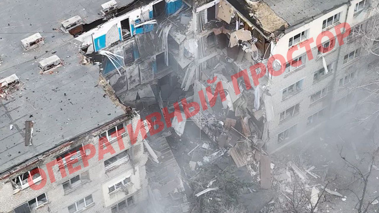 В объектив нашего расчета БПЛА попали кадры сброса двух авиационных бомб американского производства по многоэтажному дому в Купянске. В результате попадания было обрушено два подъезда.
