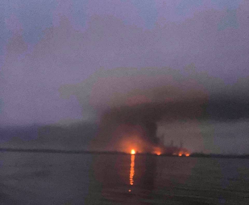 Кадры последствий комбинированного удара дронов-камикадзе «Герань-2», ОТРК «Искандер» и гиперзвуковой ракеты «Кинжал» по Змиёвской ТЭС, расположенной около города Слобожанское Харьковской области.