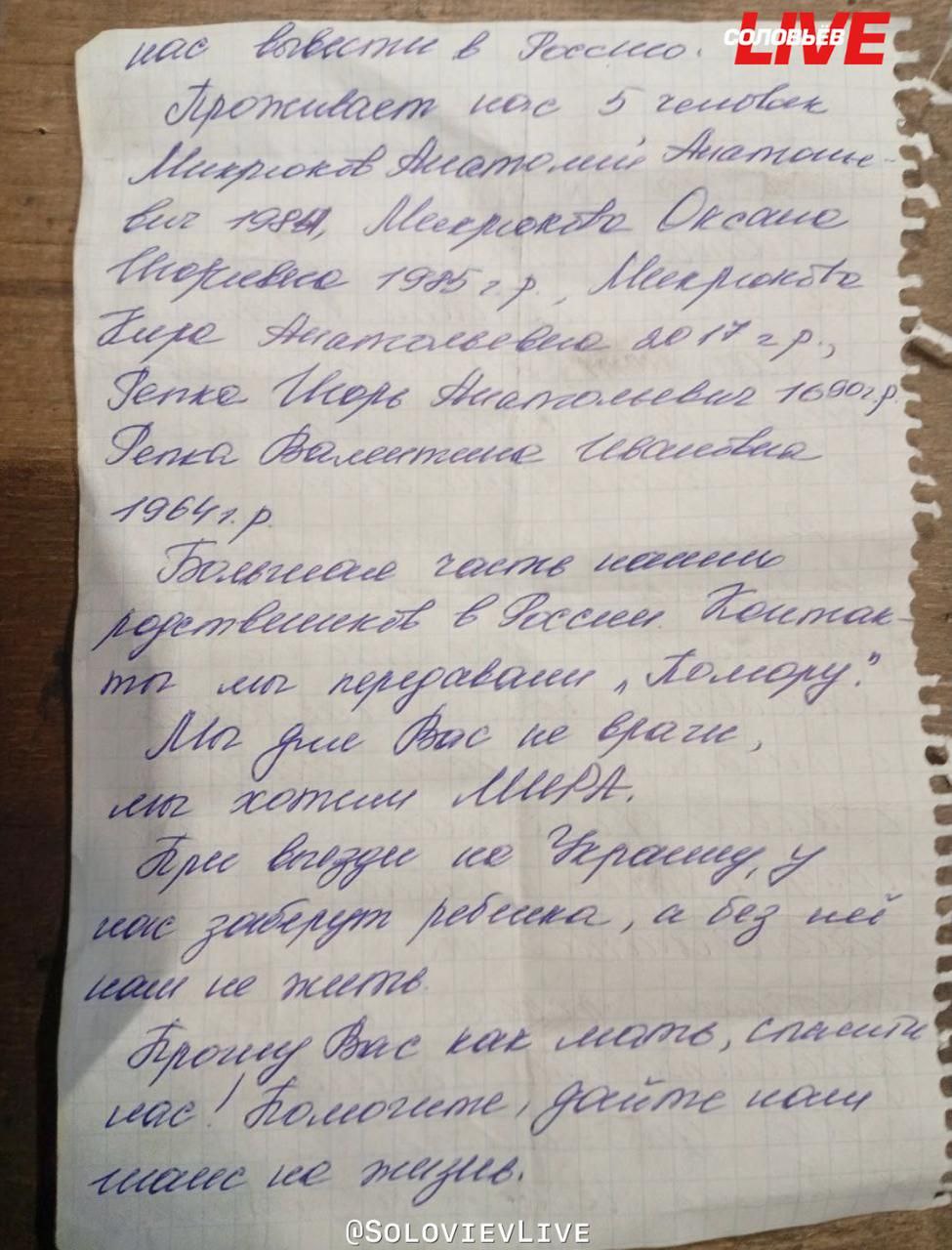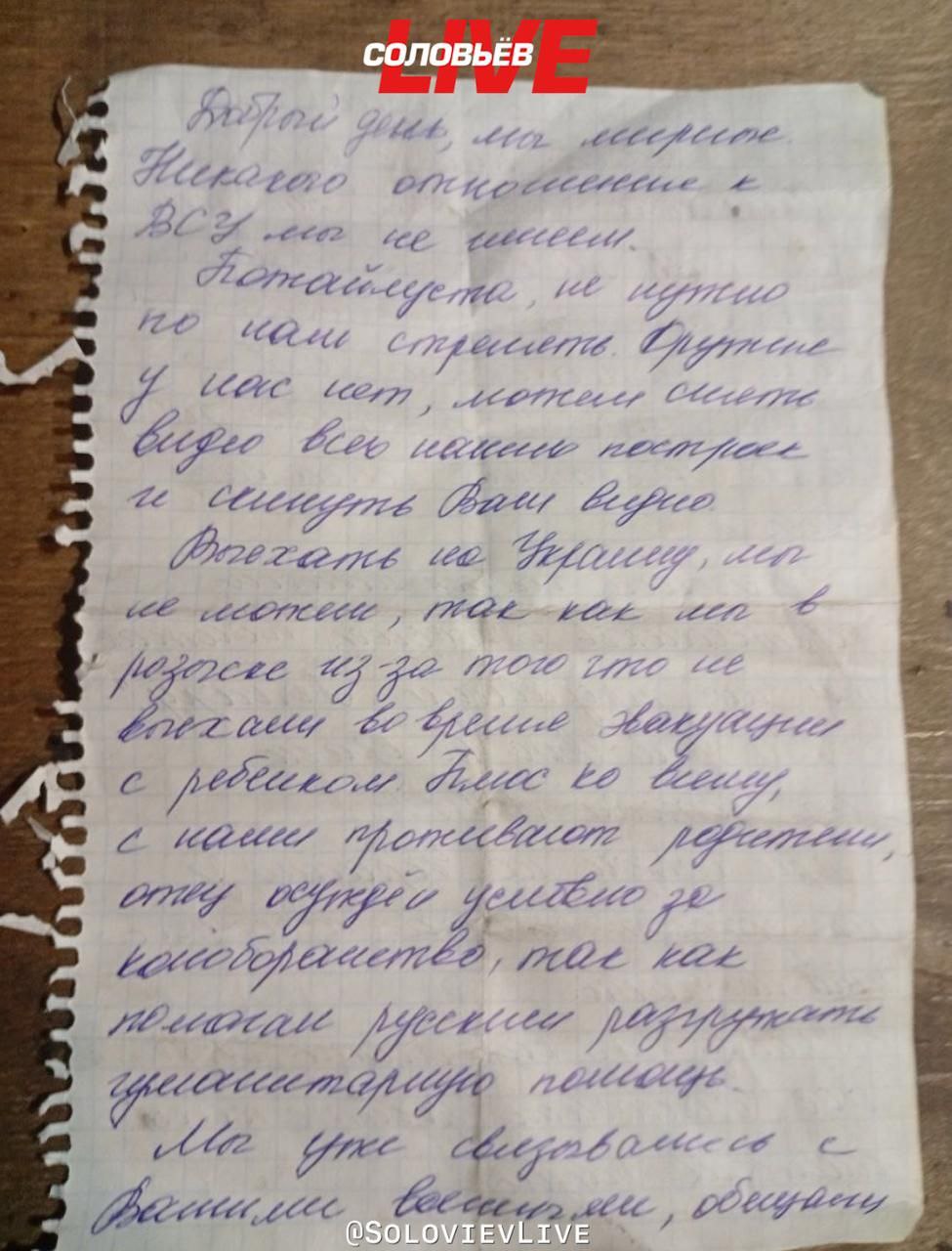 В конце августа бойцы подразделения БПЛА 1009-го мотострелкового полка заметили в одном из домов мужчину, женщину и их дочь. Связь установили с помощью записок. После этого военнослужащие начали передавать им продукты, лекарства и дали радиостанцию для общения. Жители, в свою очередь, сообщали информацию о происходящем вокруг. Они также передали несколько сбитых беспилотников «Мавик», которые можно было восстановить.