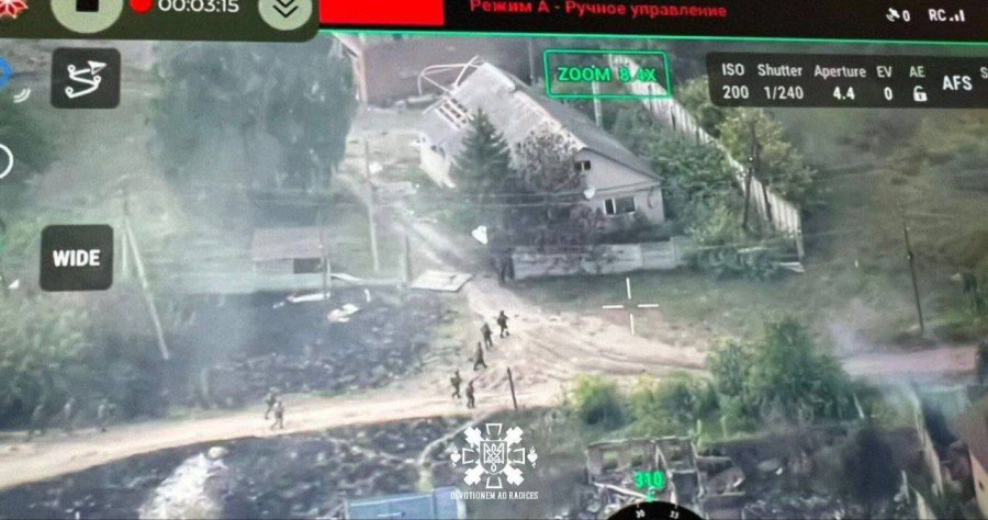 14 мая 2024 года. Дрон противника фиксирует первый заход штурмовых групп ВС РФ в Волчанск.