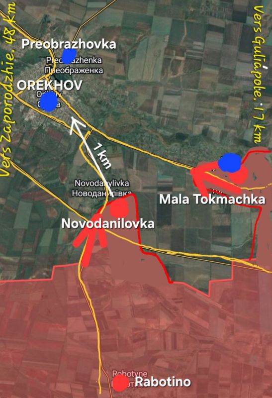 В последние дни российские войска подошли к окрестностям бастиона Орехов по двум направлениям: Новомалиновка, расположенная всего в 1 километре от Орехова и полностью освобождённая, и Малая Токмачка, где продолжаются бои.