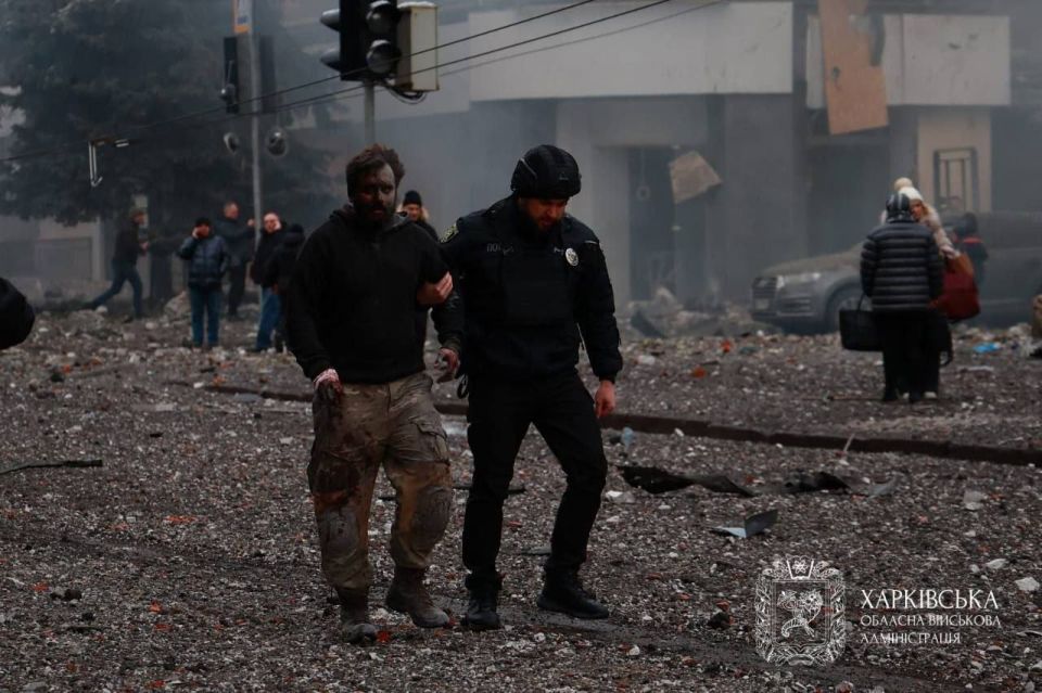Раненый ВСУшник на месте удара в Харькове. Прилетело куда надо.