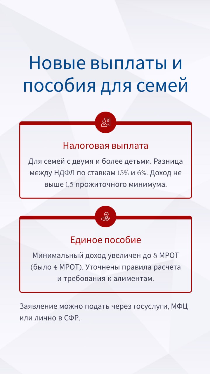 Появится новая семейная налоговая выплата — это дополнительная финансовая поддержка для родителей. Механизм позволит вернуть часть уплаченного НДФЛ или получить фиксированную сумму на ребенка.