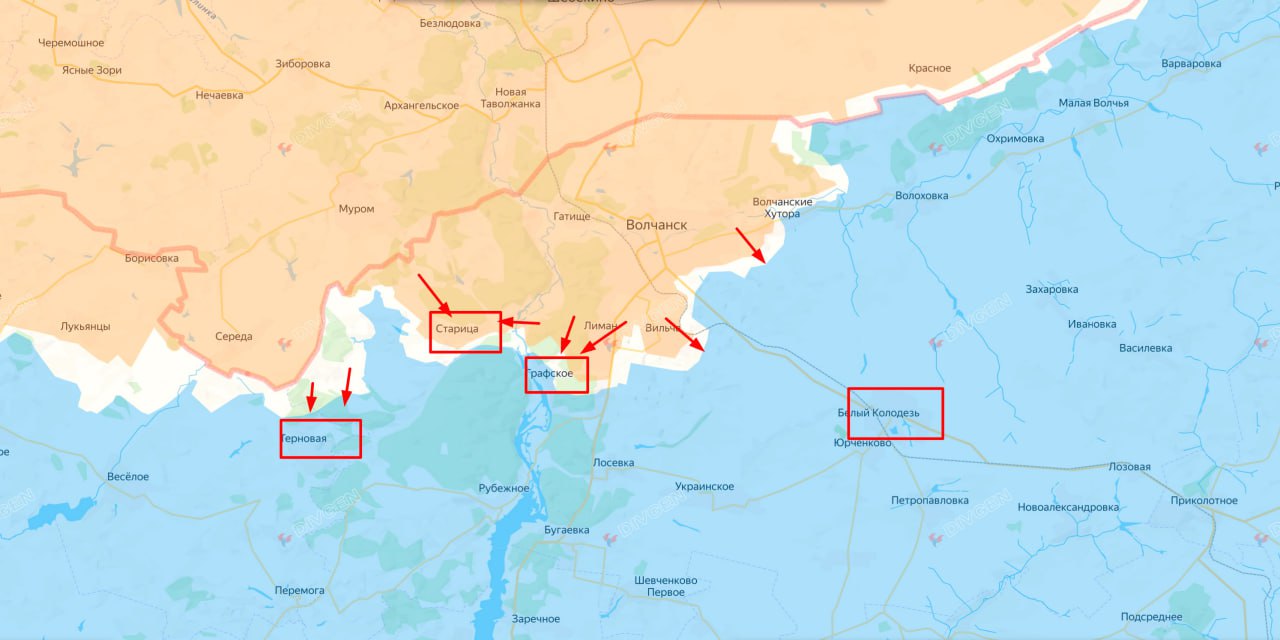 На Волчанском направлении российские войска продолжили наступательные операции в районах Билого Колодязя и Терновой (пригород Харькова), добившись продвижения в пяти ключевых участках. Наступление ведётся одновременно на восточном, северо-западном и западном флангах с постепенным расширением контроля над лесными массивами и оврагами.