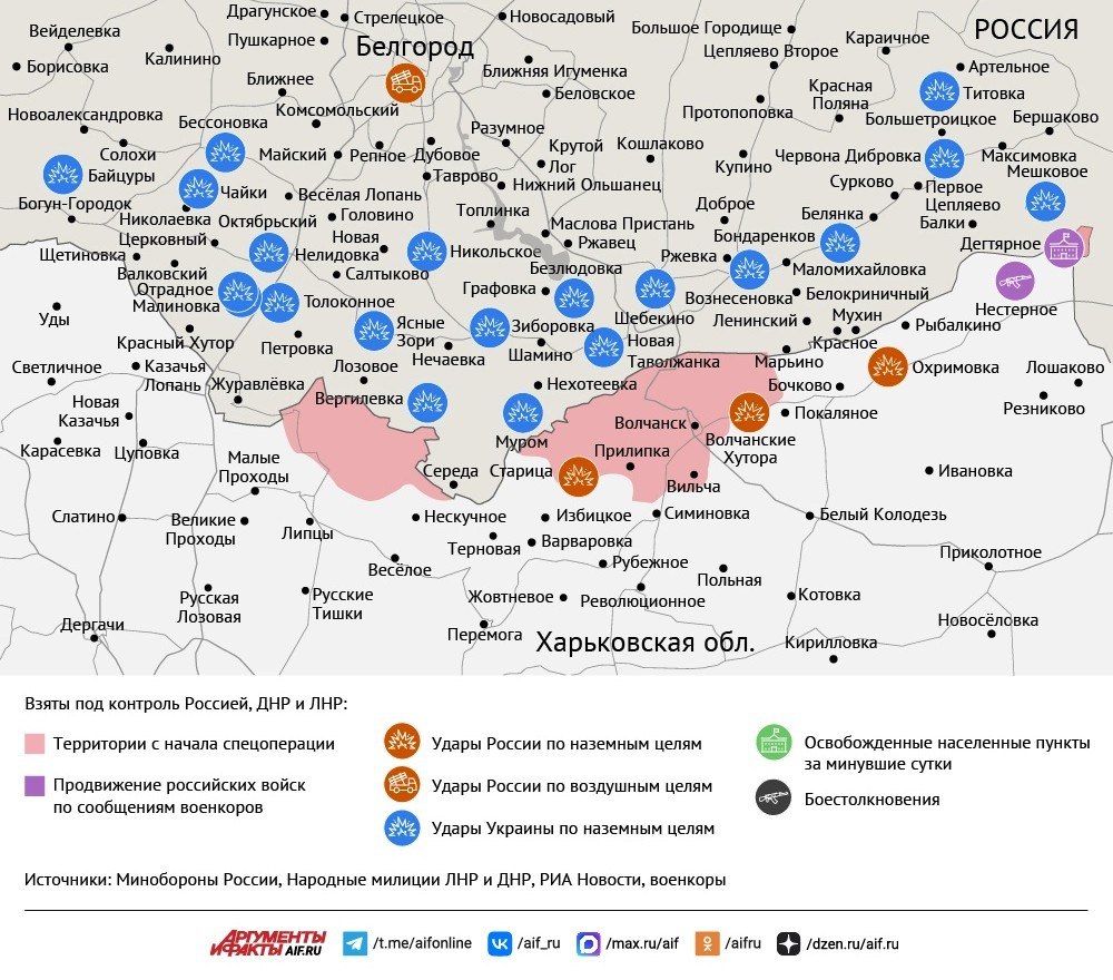 По информации военкоров, ВС РФ совершили неожиданный для противника рывок в Харьковской области и освободили село Дегтярное. В Минобороны пока не подтвердили успех наших войск.