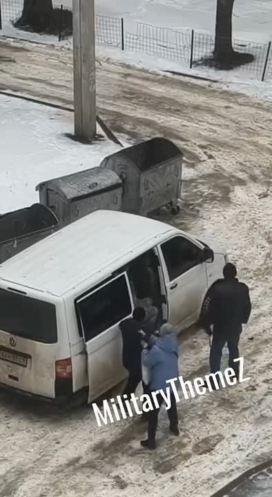 В Харькове люди мусорными баками перекрыли дорогу ТЦК, потому что хотели помочь парню, которого паковали в бусик, но отбить его все же не удалось.