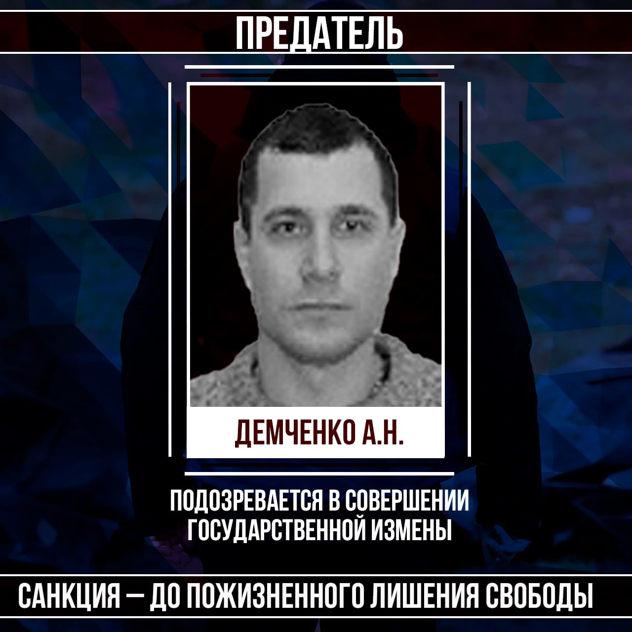 Своими действиями Демченко Александр Николаевич совершил тяжкое преступление против безопасности государства и интересов своих сограждан. За указанные деяния подозреваемому грозит до пожизненного лишения свободы.