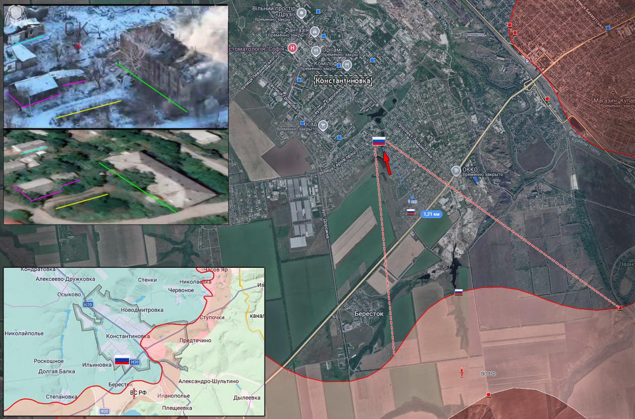 Штурмовые подразделения ВС РФ ведут атаки в районе микрорайона Берестовый. Штурмовая группа заняла позиции в капитальном строении. Зона контроля ВС РФ в южной части Константиновки увеличена более чем на 1 км.