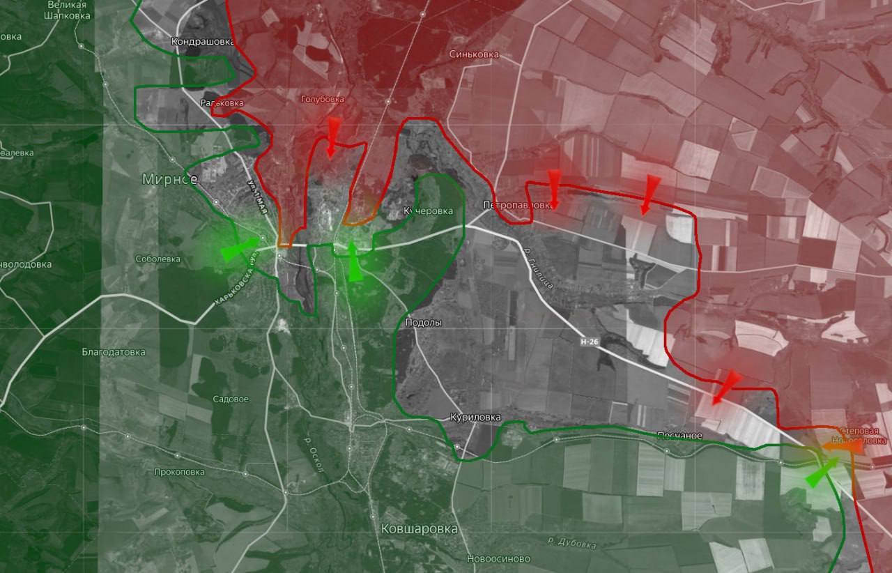 «На Купянском направлении российские войска продвинулись в районе Песчаного, начались бои за село.Поступают сообщения о новых попытках ВСУ продвинуться на северных окраинах Купянска. В городе продолжаются активные бои».Вражеские сводки